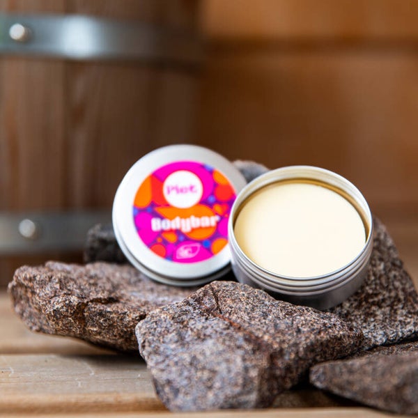 Een bodybar is perfect voor na het douchen. Je schudt de bar uit het blikje en wrijft ermee tussen je handen of direct op je lijf.